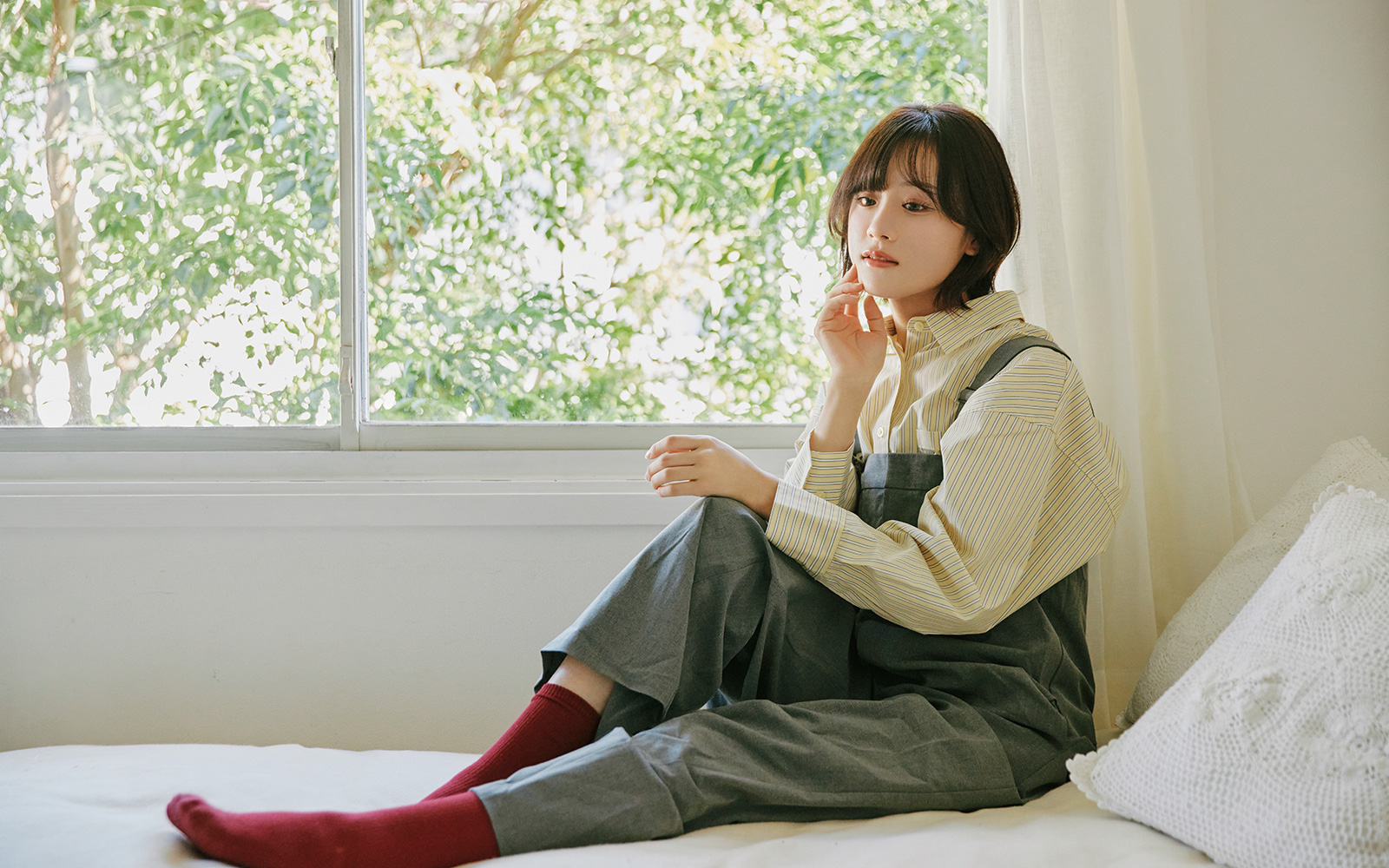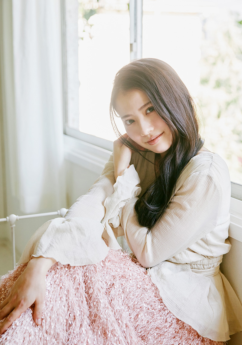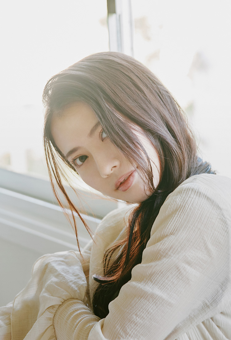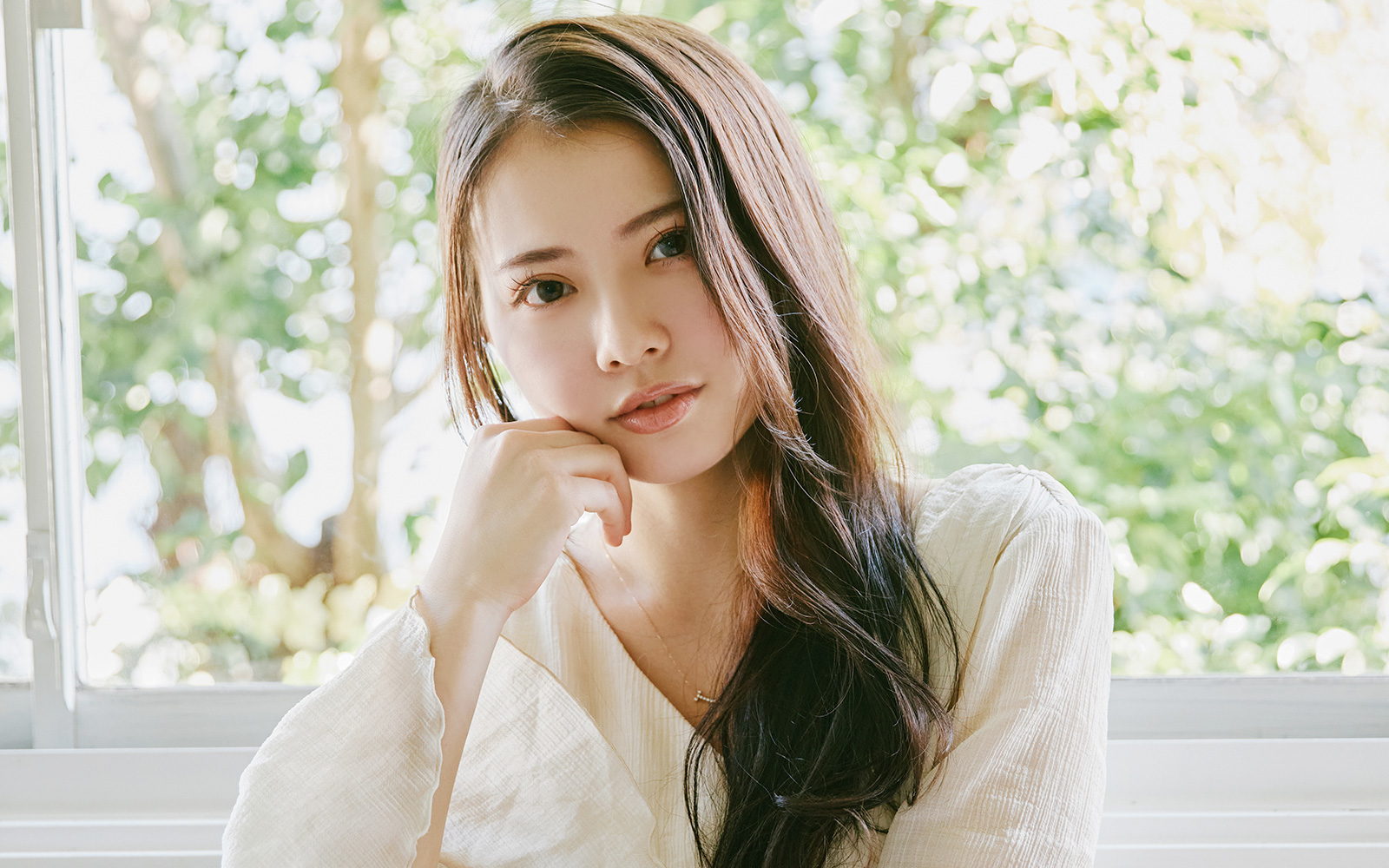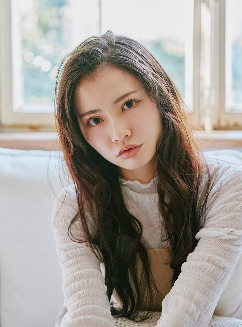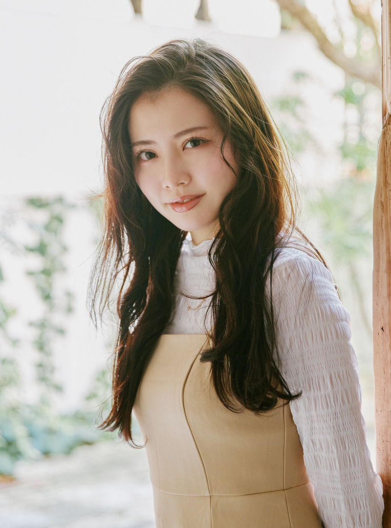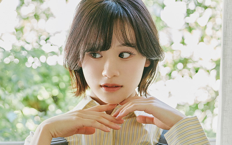 前髪と全体をランダム巻き。バームとオイルでシルエットを整え、前髪はスプレーで立ち上げる。全体的にふわっと仕上げることでこなれた印象のスタイルに。