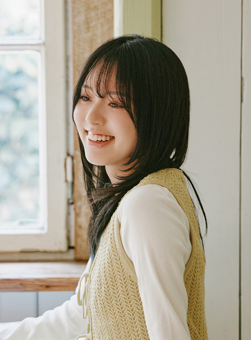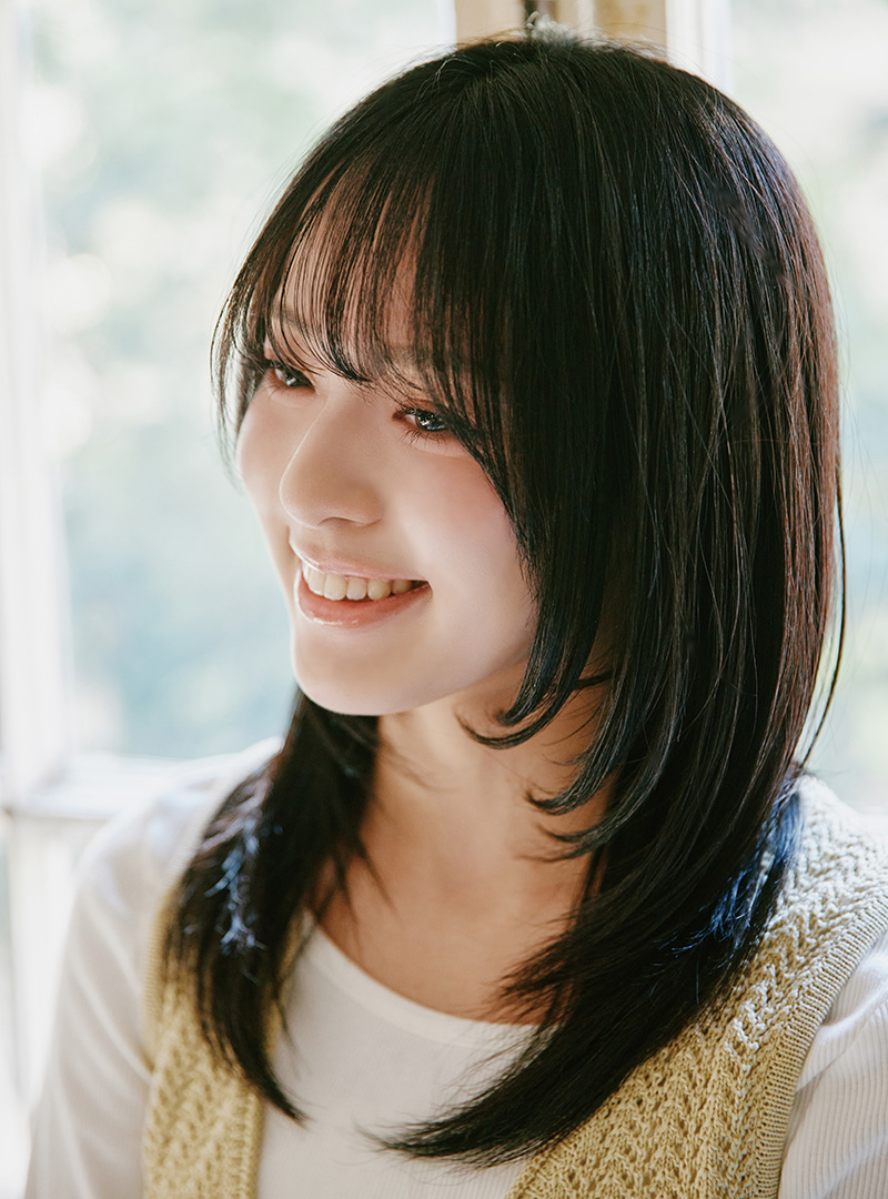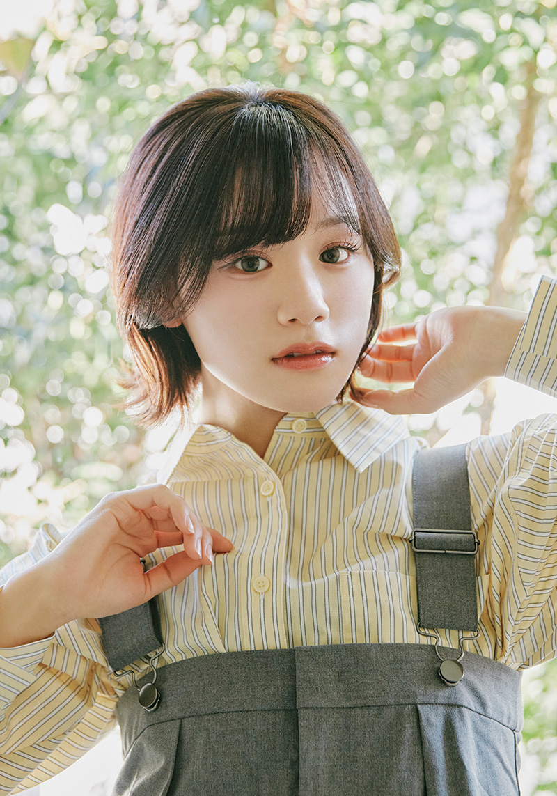 ストレートアイロンで全体をやや外ハネに。オイルでボリュームを押さるようにスタイリング。やりすぎない外ハネで清楚なミニボブスタイルに。