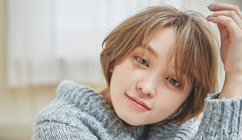 大人っぽさと女子っぽさをミックスさせた外ハネボブスタイル。 中間までを全体的にブローし、毛先は32mmのコテで外ハネに。最後にオイルとバームを混ぜて全体に揉み込み、束感とウエット感を出す。